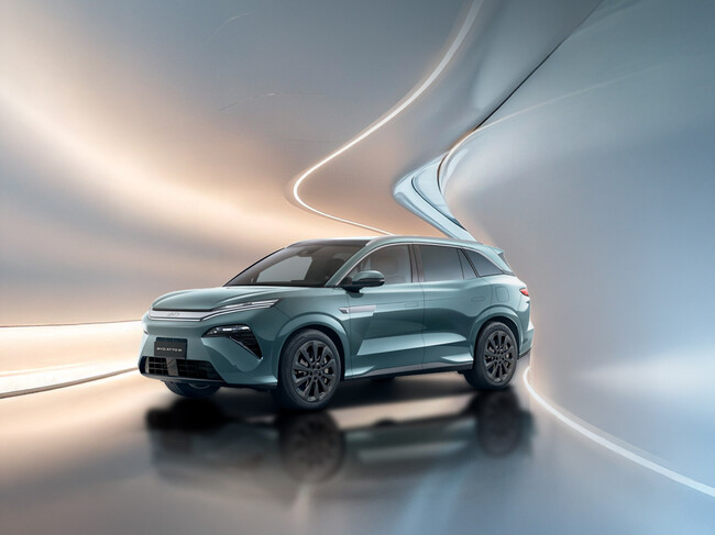 Estéticamente, su carrocería de 5.04 metros de largo, 1.99 de ancho y 1.77 de alto, con una distancia entre ejes de 2.95 metros, destaca por incorporar el más reciente lenguaje de BYD, más aerodinámico y con un prominente frontal angulado, que equipa faros divididos con tecnología LED.